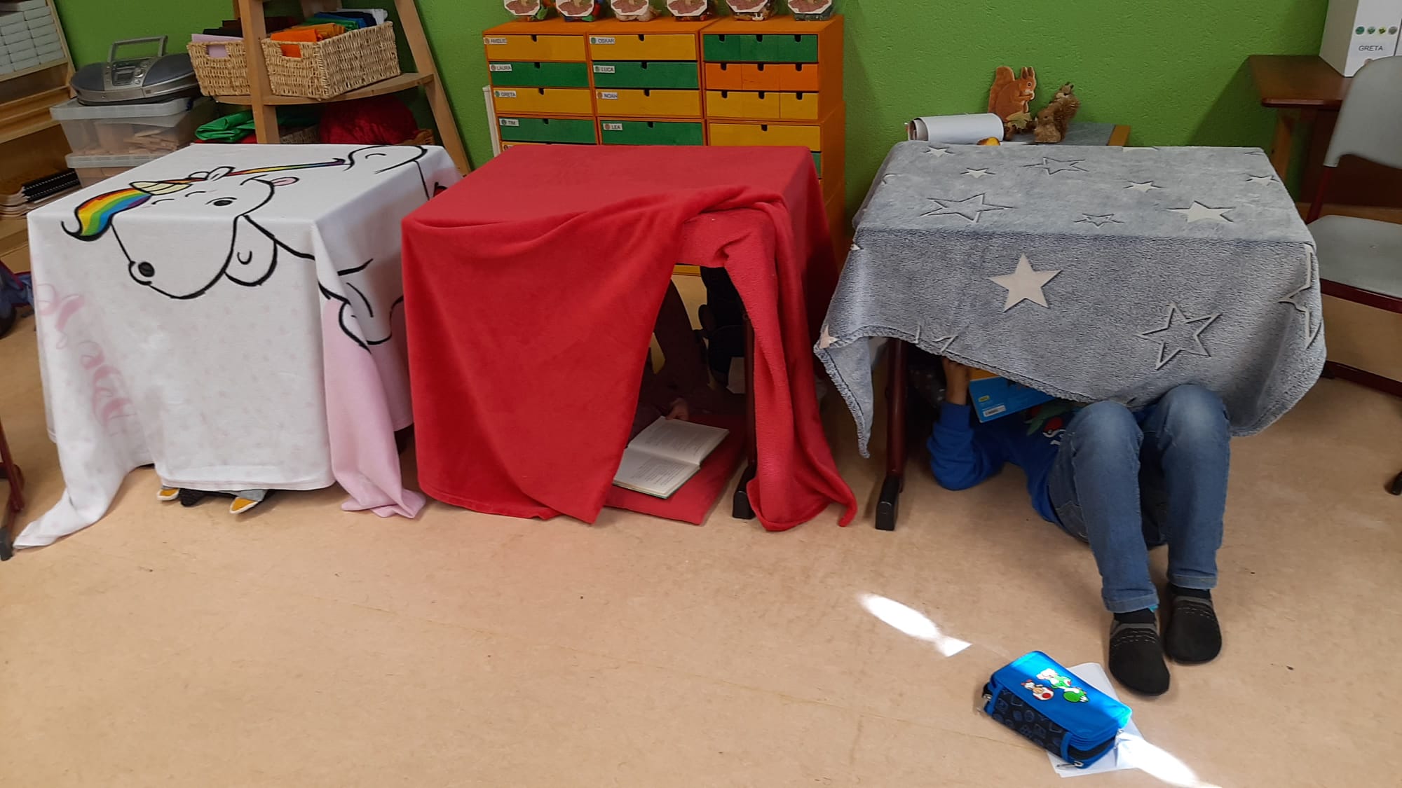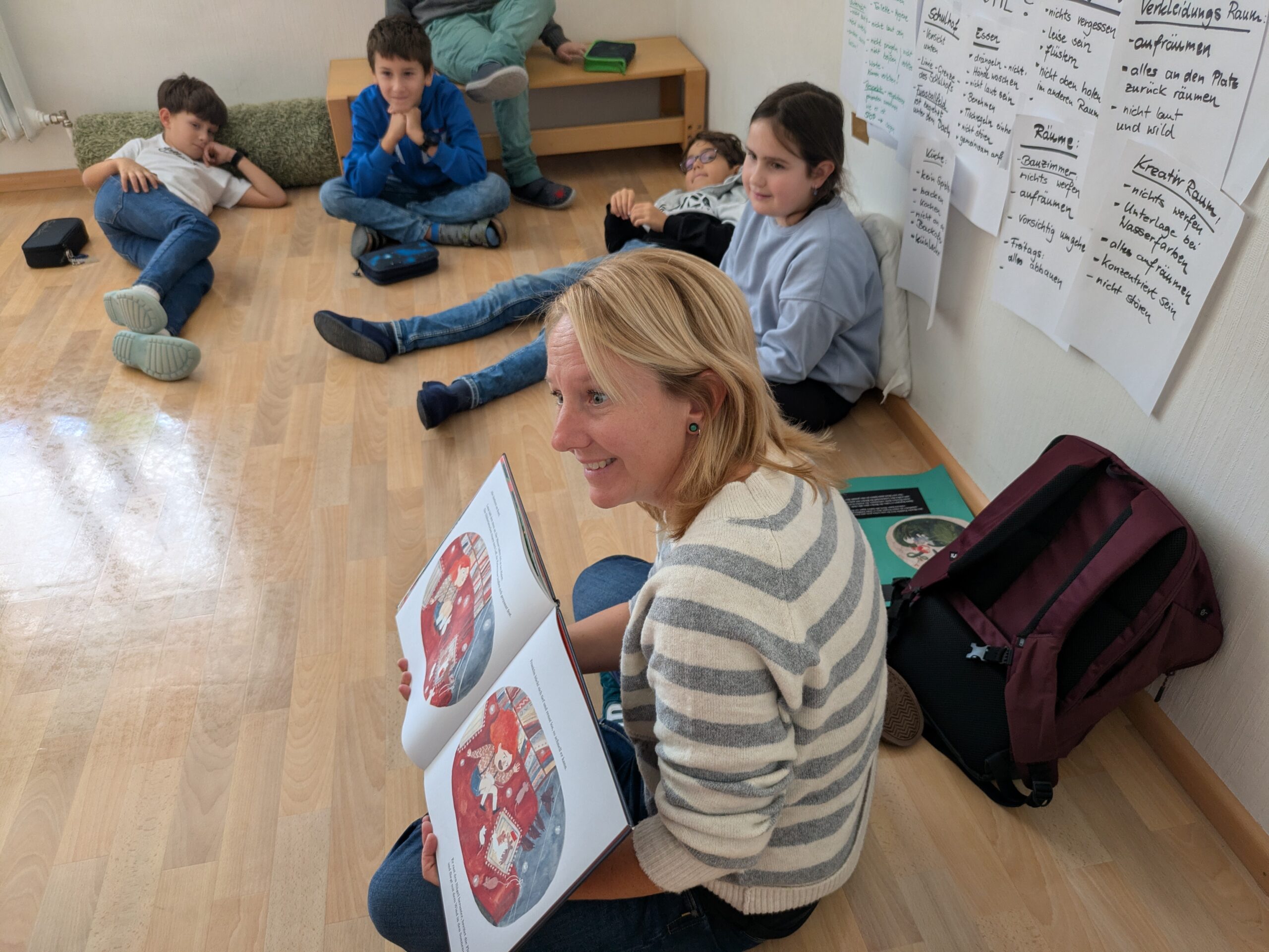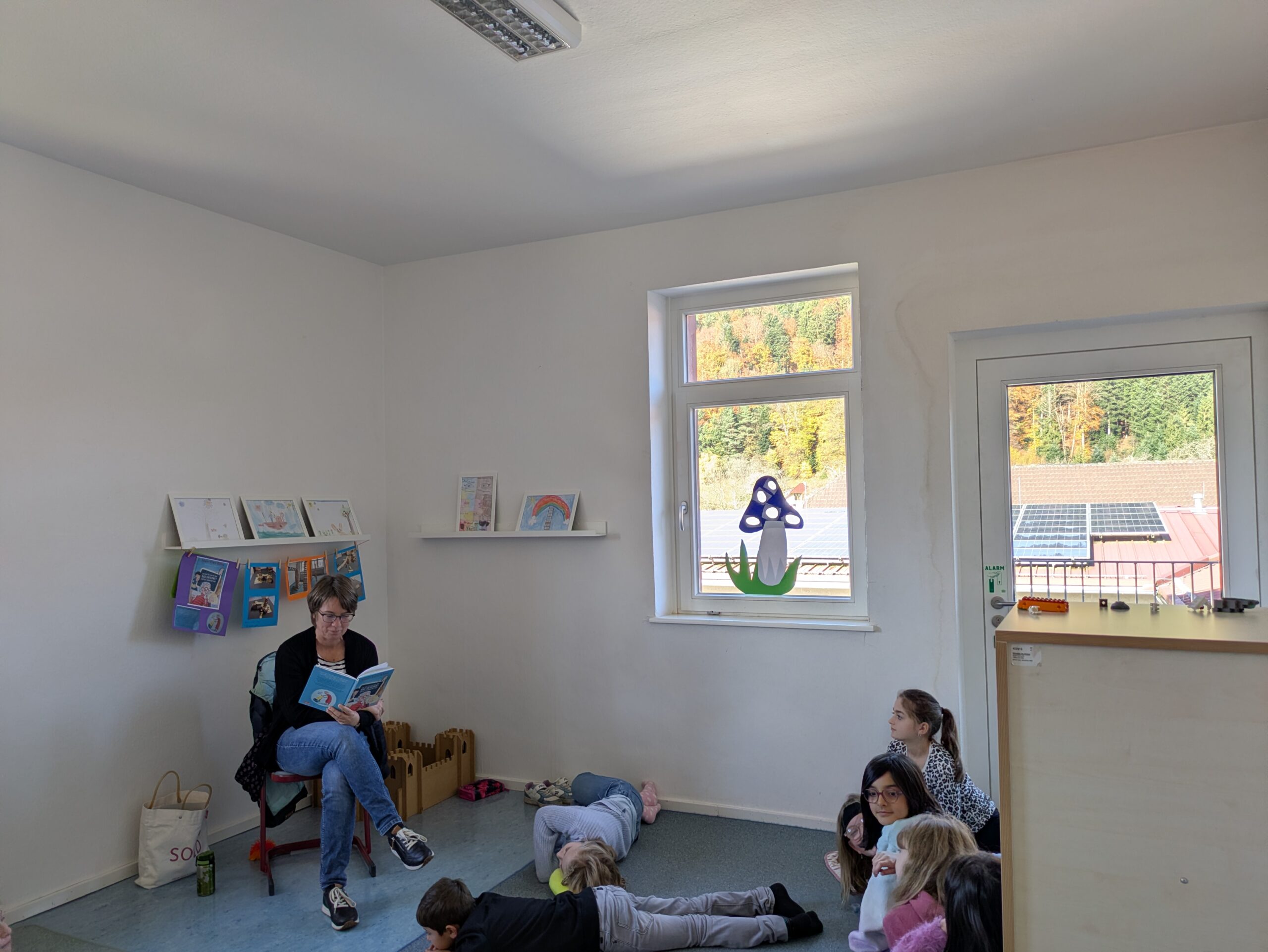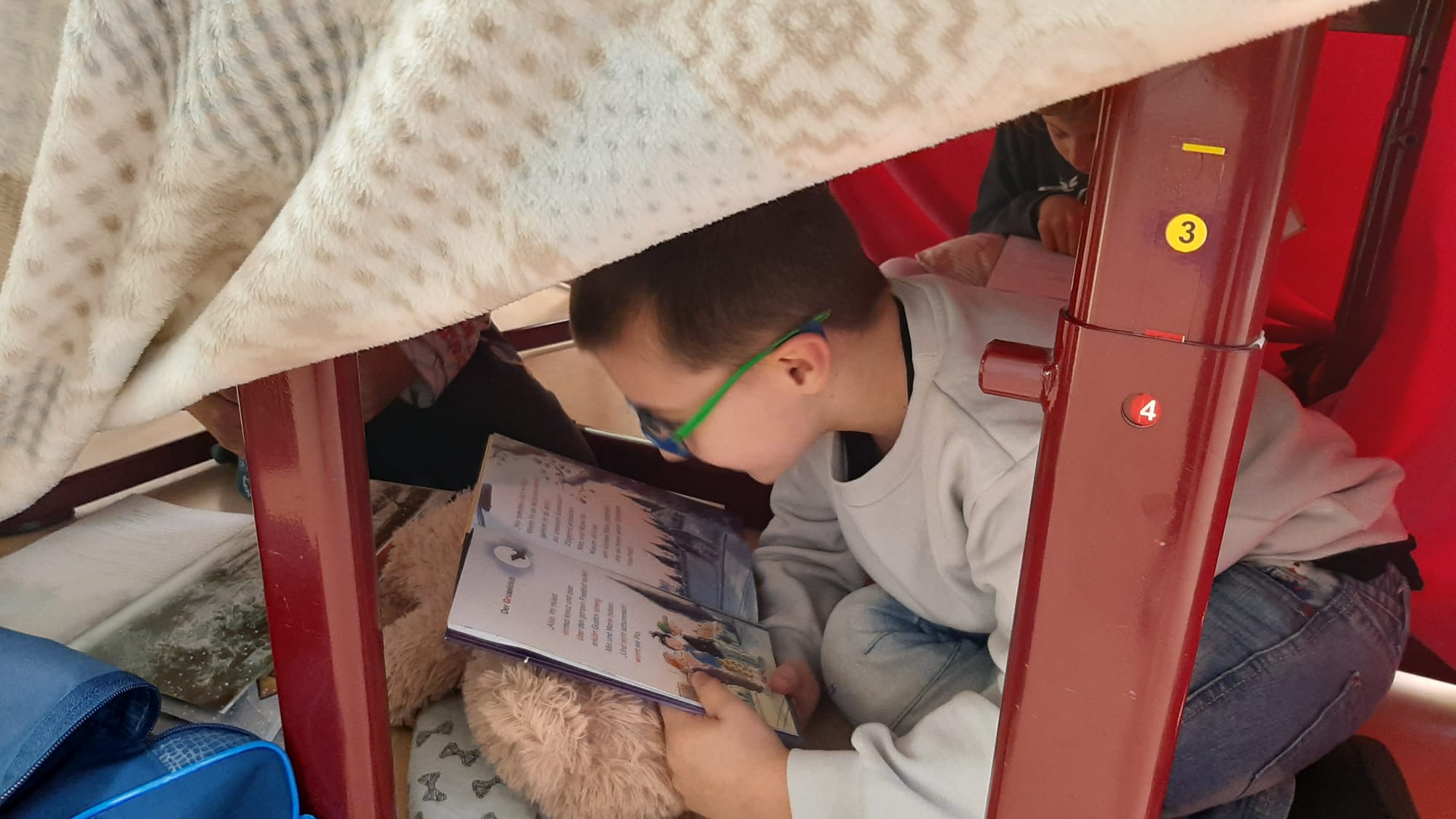 Beim diesjährigen Frederick Tag suchten sich die Schülerinnen und Schüler aus einer Auswahl an verschiedenen Titeln, ein spannendes Buch für das Lesekino aus. In klassenübergreifenden Gruppen hörten alle mit viel Interesse ihrer jeweiligen Vorleserin zu. Im Anschluss konnten die Kinder an einem von ihnen selbstgewählten „Lieblingsleseort“ in der Schule in einem von zu Hause mitgebrachten Buch lesen. Besonders toll war es für die Schülerinnen und Schüler verschiedene Leseorte auszuprobieren und heraus zu finden, was einen pefekten Ort zum Lesen überhaupt ausmacht.