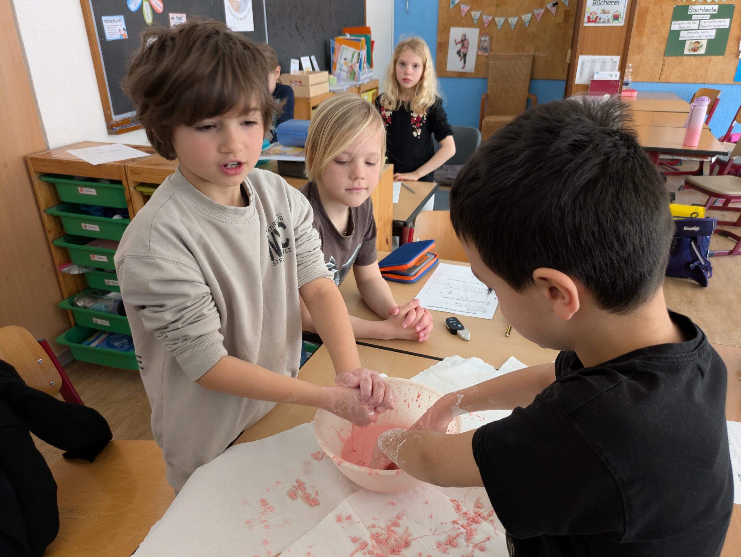 Die Experimente wurden nach der Methode des Forscherkreislauf durchgeführt, sodass die Kinder aktiv teilnehmen und ihre eigenen Erkenntnisse sammeln konnten. Es war eine tolle Gelegenheit, die Neugier der Schülerinnen und Schüler zu wecken und sie zu motivieren, weiter zu forschen und zu entdecken.