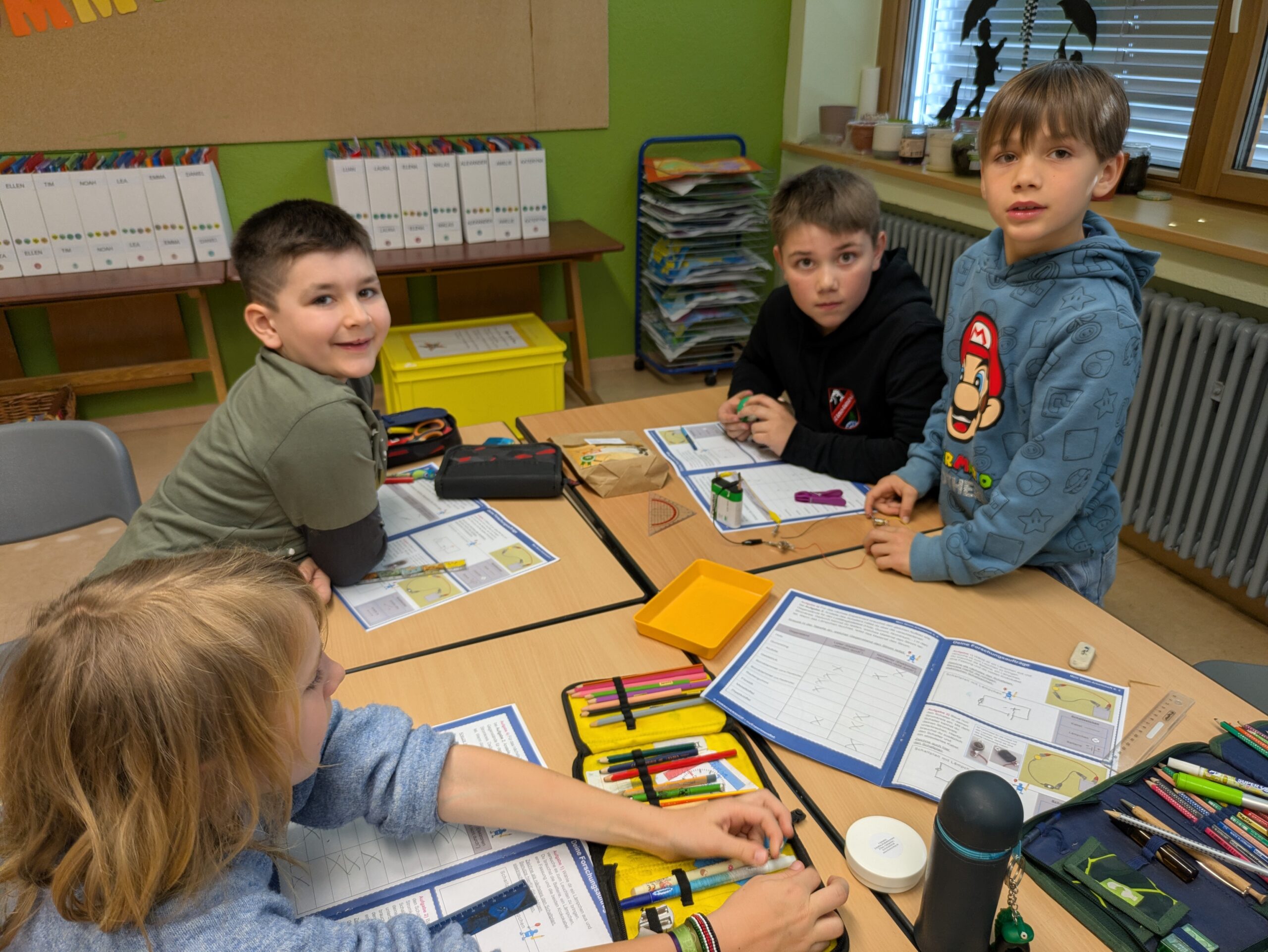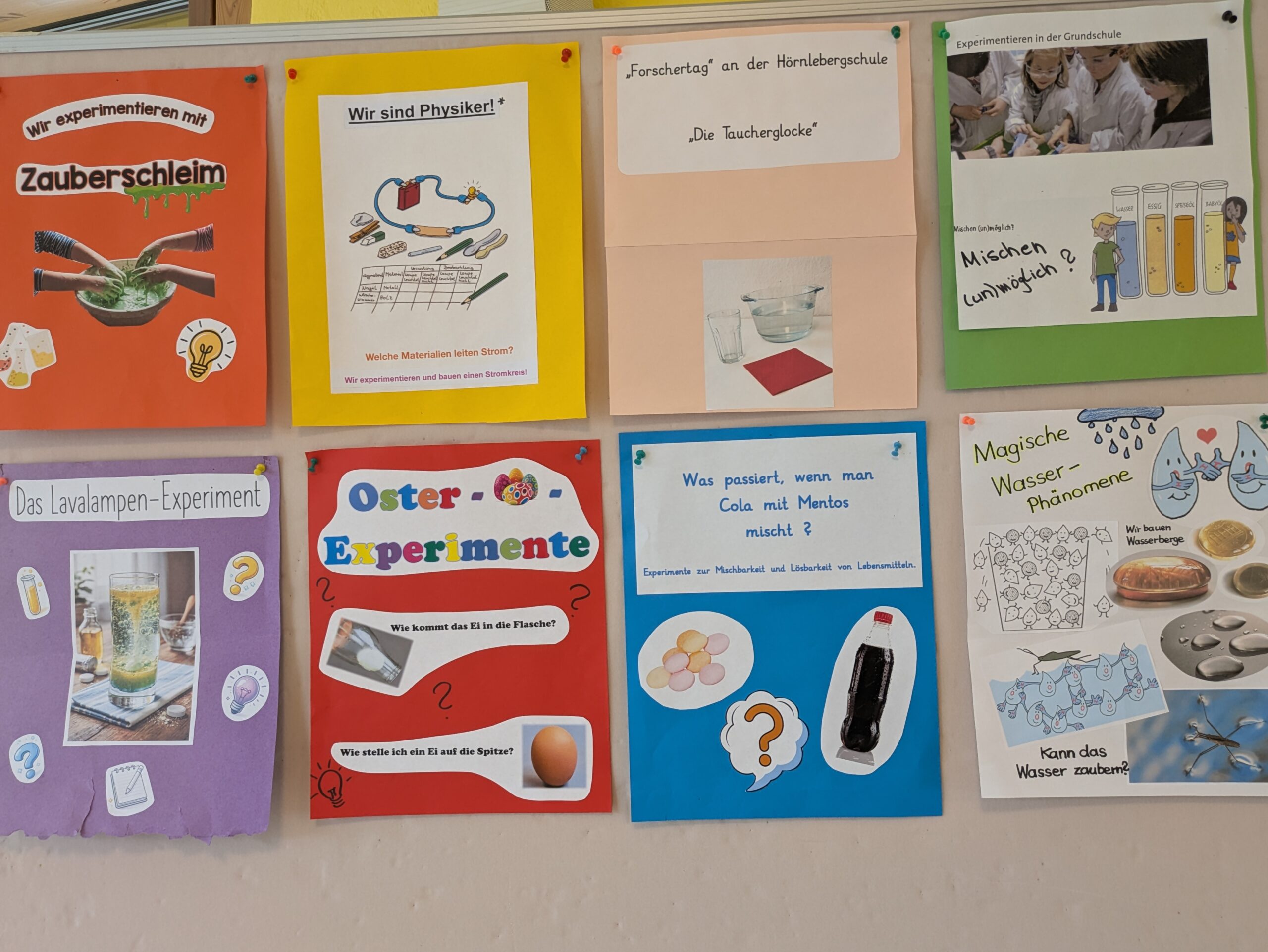 Am Dienstag, 24. März 2026 fand an der Hörnlebergschule zum ersten Mal ein Forschertag statt. Alle Klassen machten mit und tauchten in die Welt der Naturwissenschaften ein. Die Schülerinnen und Schüler sollten die Freude am Forschen und Entdecken an einem Projekttag erleben. In verschiedenen Workshops zu 8 unterschiedlichen Themen, wie z.B. Elektrizität, Wasserkreislauf, Experimente mit Schwimmen und Sinken, Löslichkeit von Stoffen, Experimente zu physikalischen Vorgängen und chemischen Reaktionen, … konnte man ausprobieren, tüfteln, entdecken, vermuten und staunen.