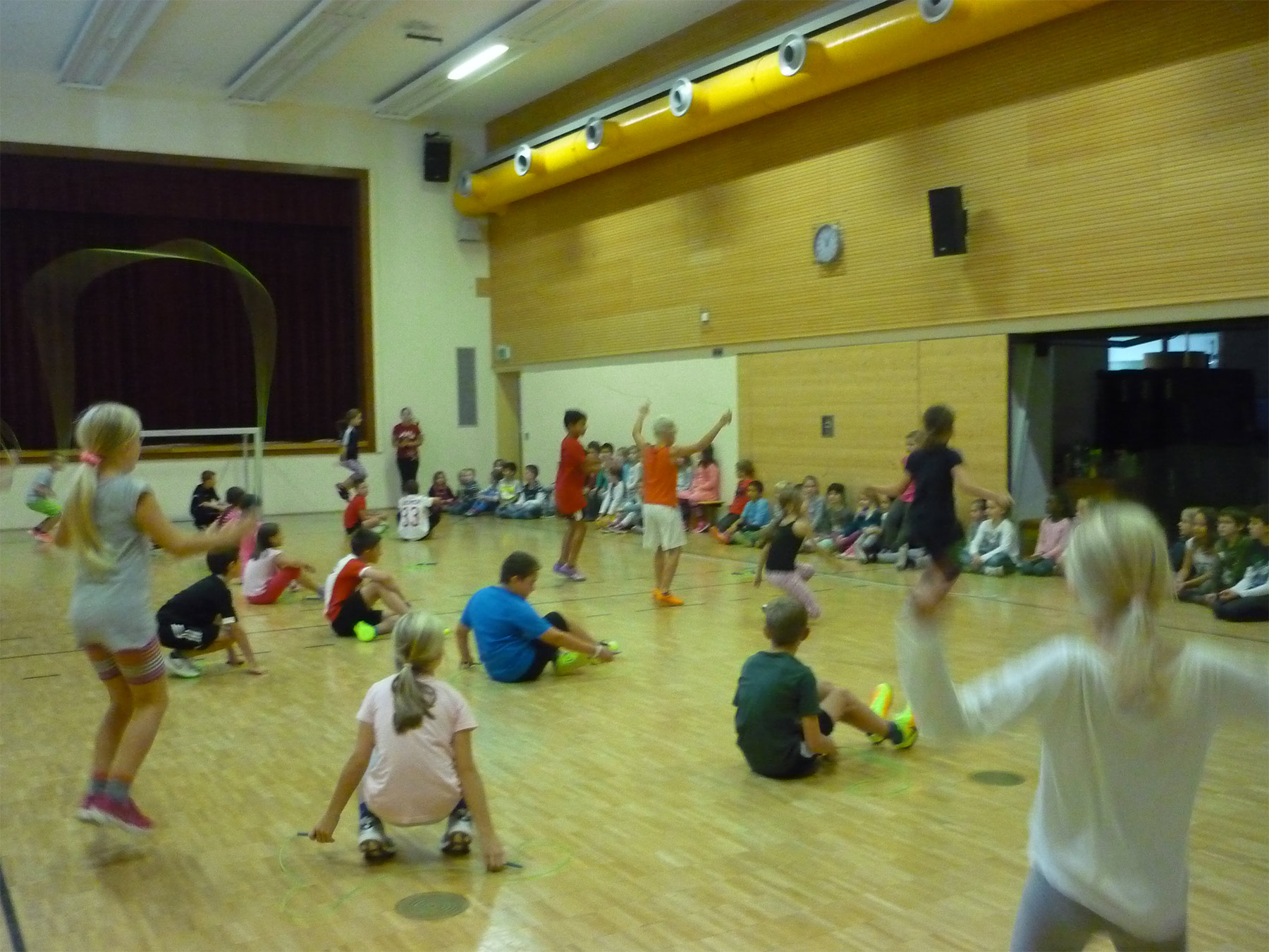 Schüler/innen der jeweils 4.Klasse lernen in einem Workshop die sportliche Form des Seilspringens. Es werden zahlreiche Sprungvariationen, die alleine, zu zweit oder in der Gruppe durchgeführt werden können, trainiert. Die Ergebnisse werden anschließend in einer kleinen Schulaufführung präsentiert.